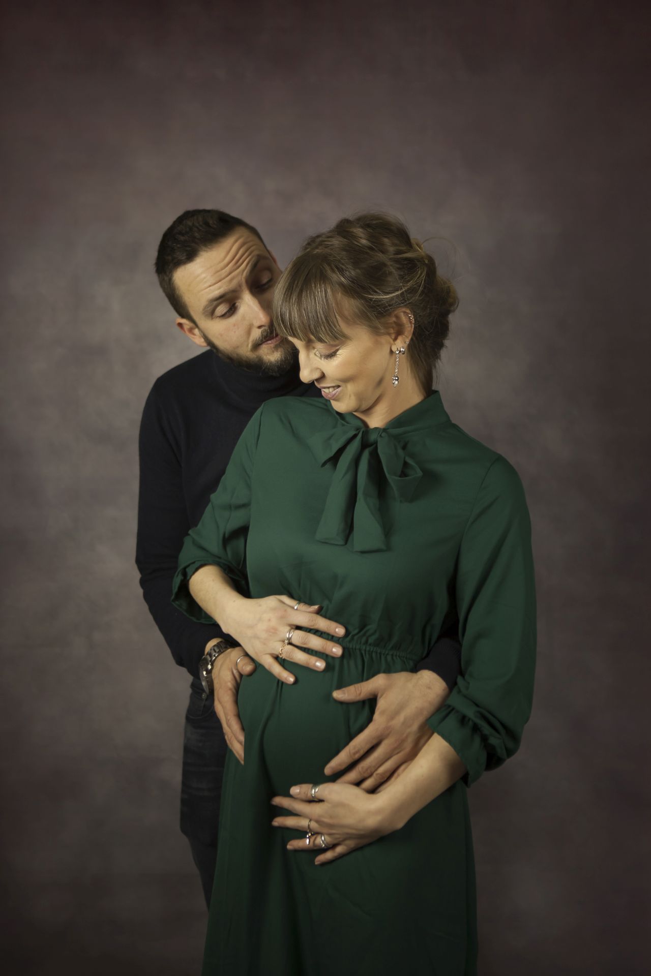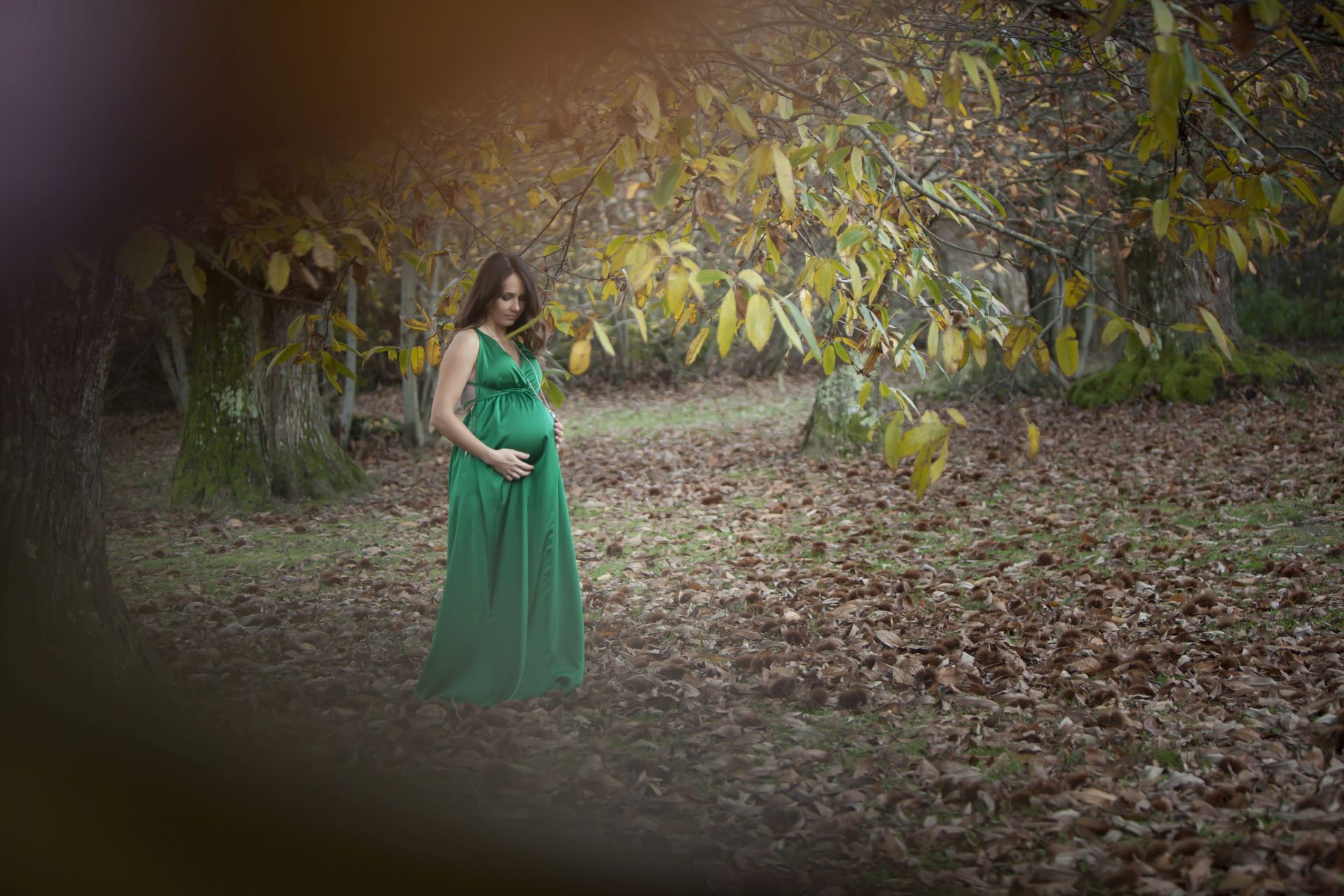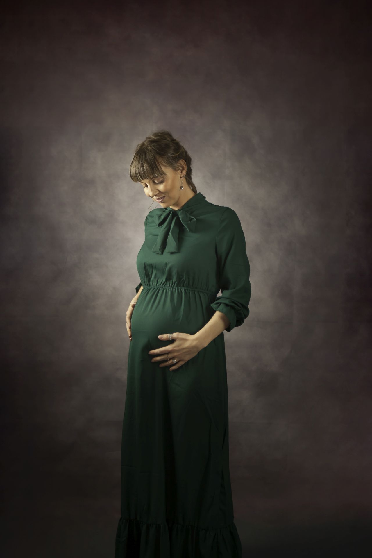 Abito verde profondo con taglio ottocento, manica ampia con polsini aderenti e collo rialzato con fiocco. Elegante e dolcissimo. Per gravidanze e non solo!