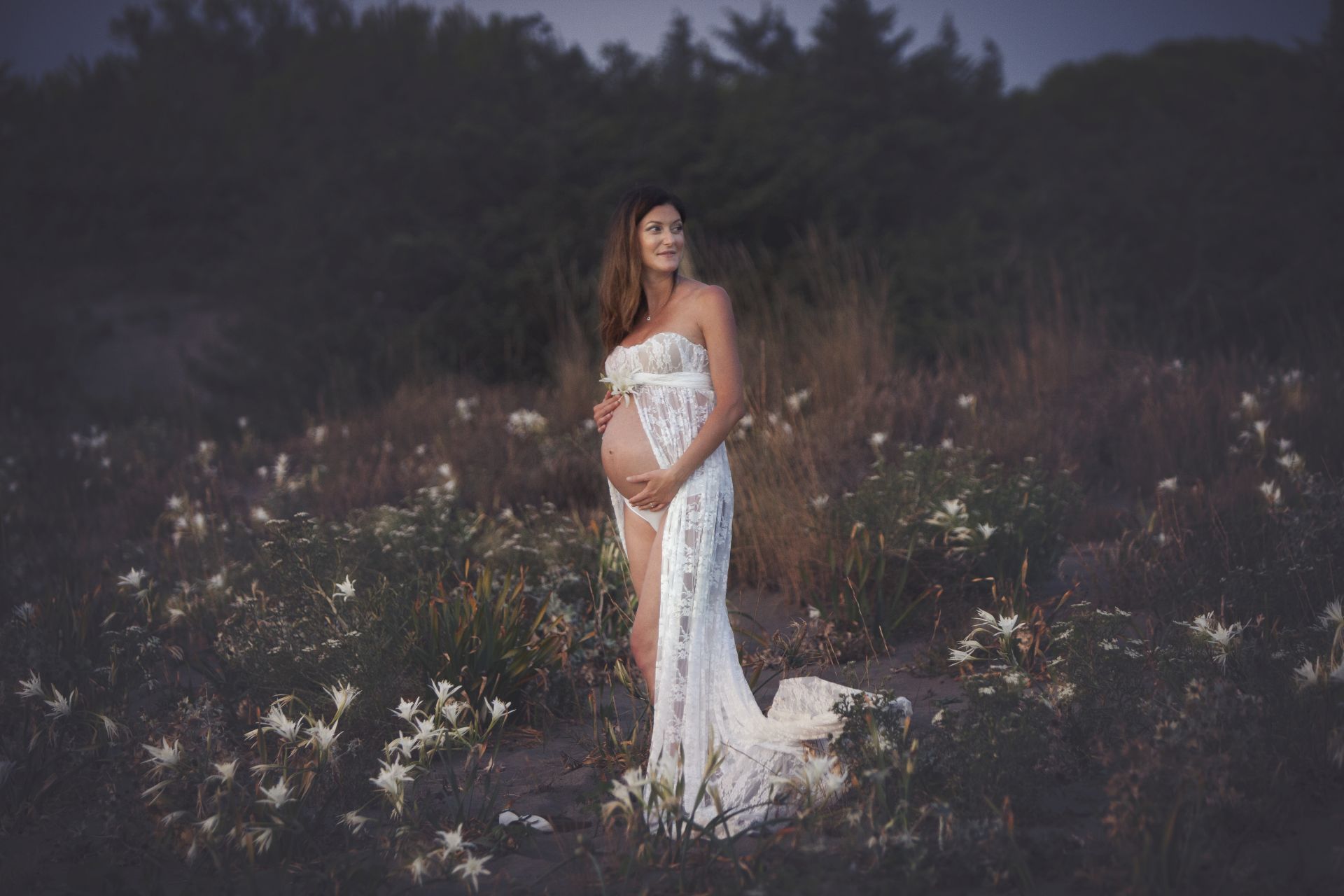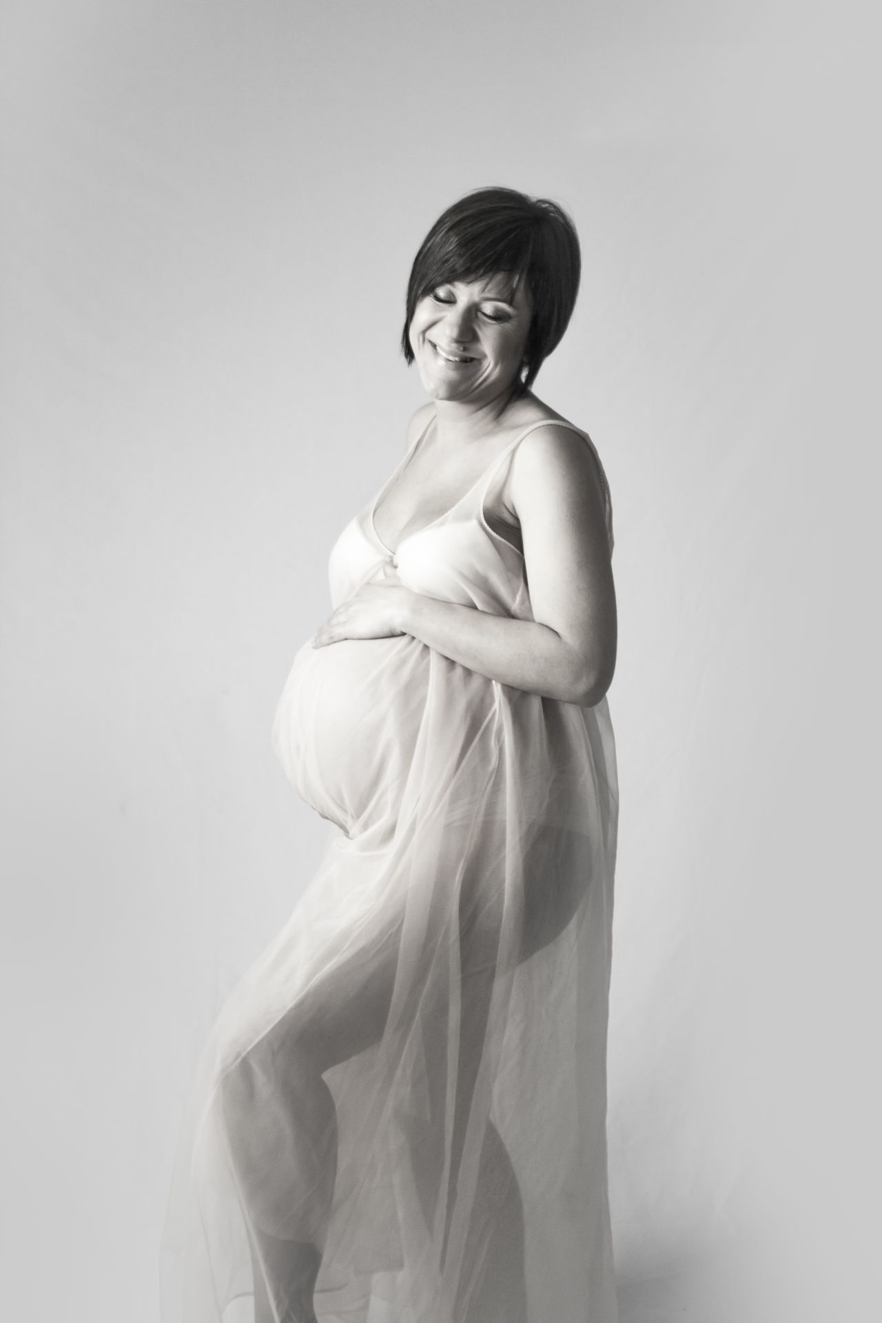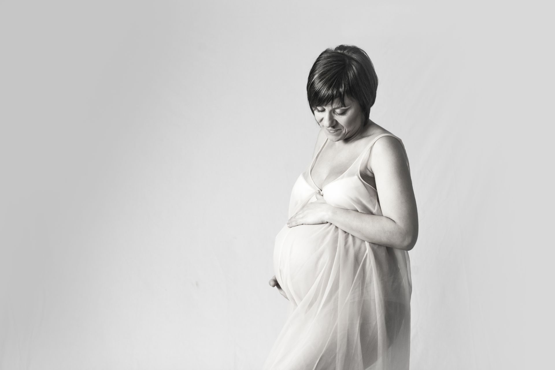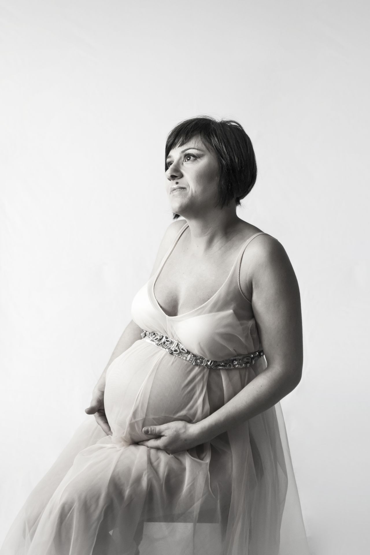 Un classico tra gli abiti Maternity in pizzo bianco dalle dolci trasparenze. Abbinabile ad un body e ad una stola in coordinato o da indossare con intimo neutro. Possibile in due versioni, con maniche ampie e romantiche o con un un bellissimo scollo a cuore.