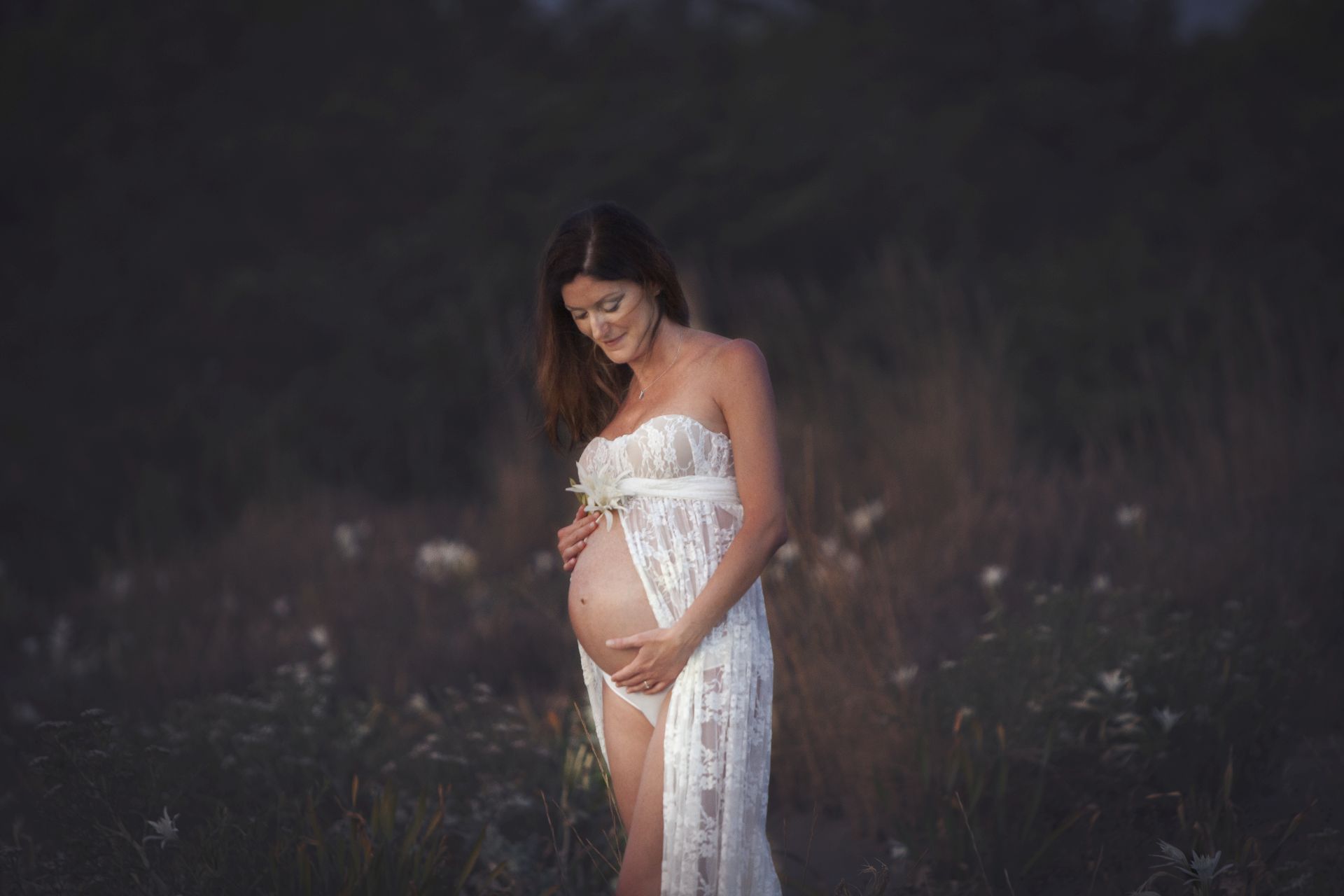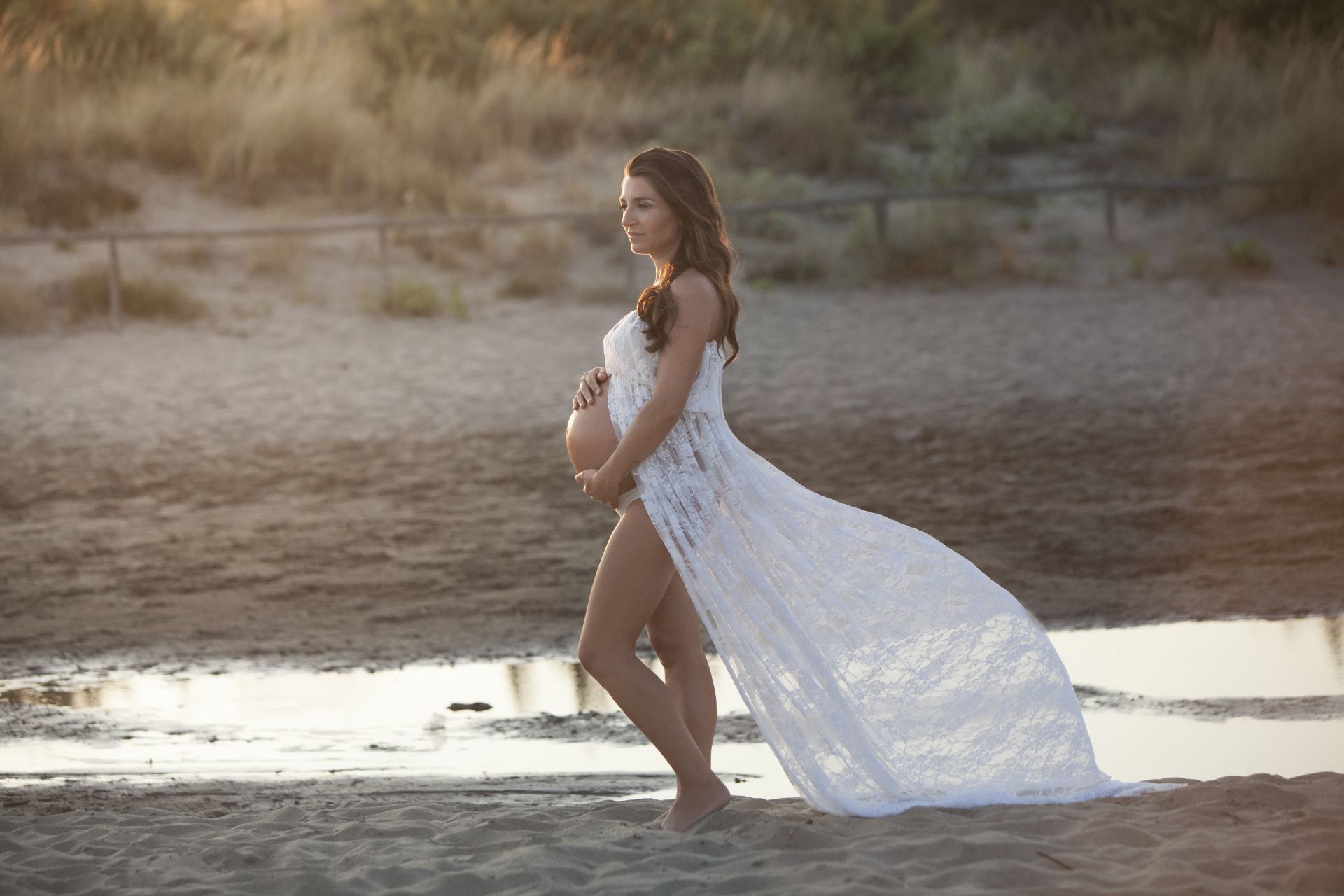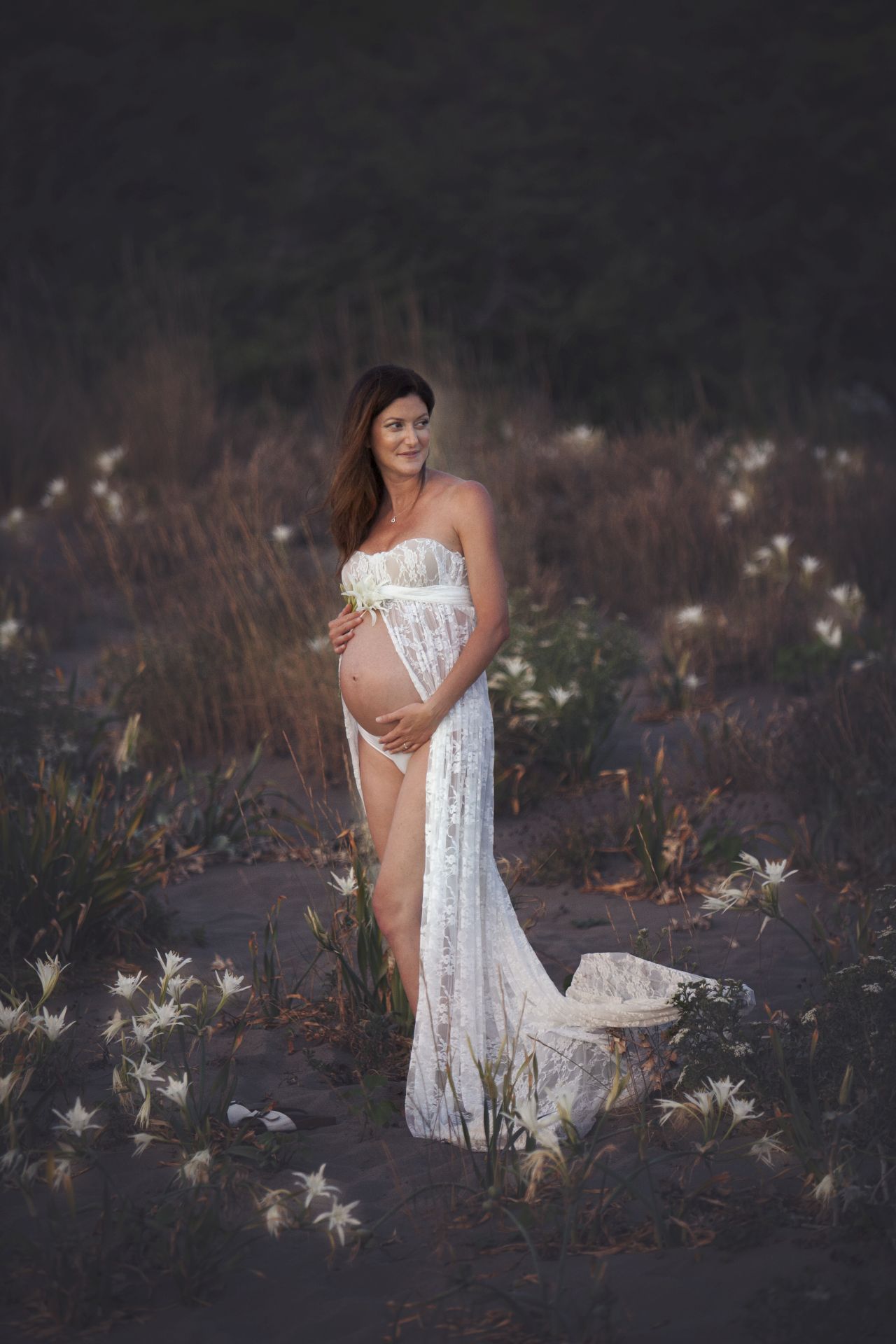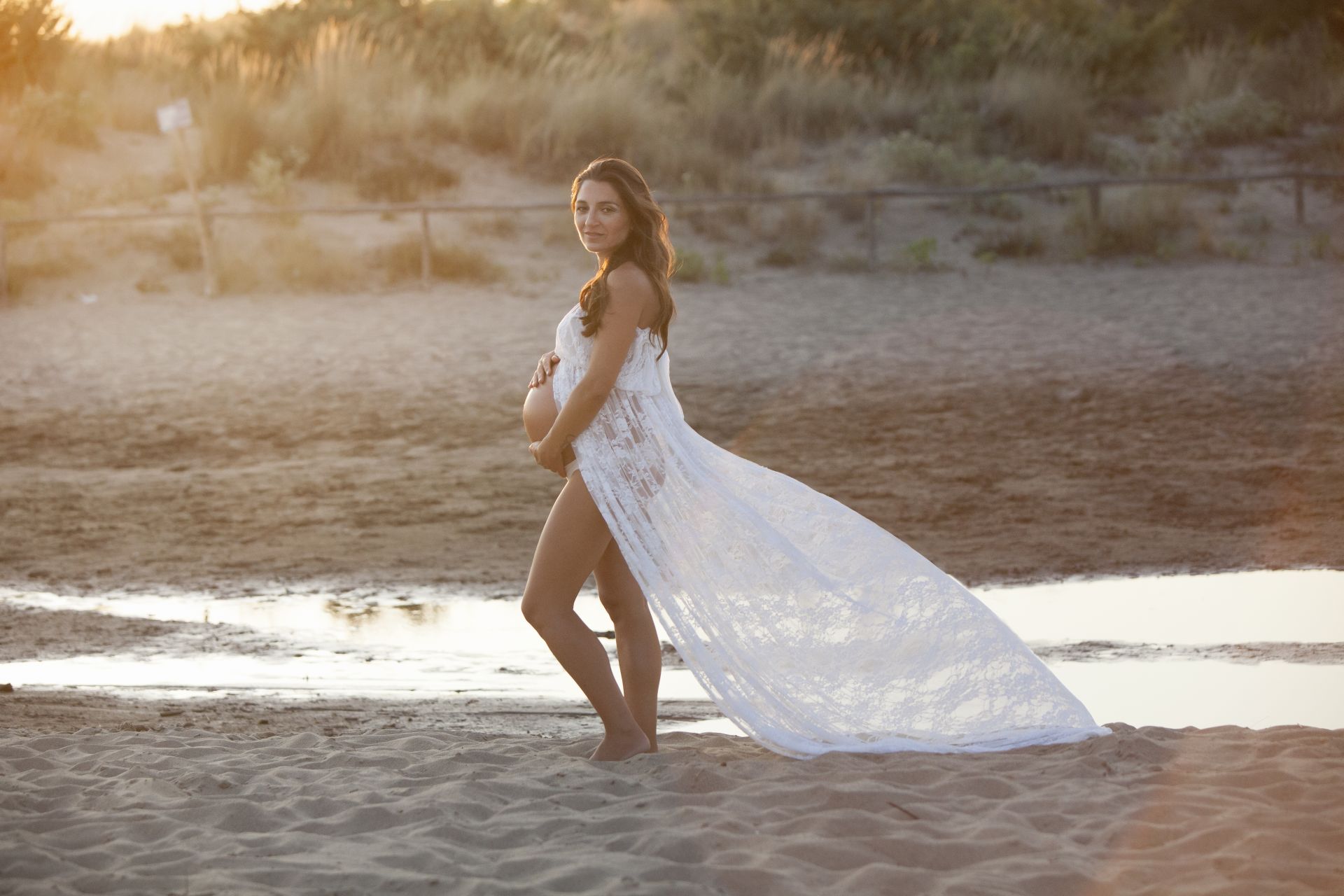 Un classico tra gli abiti Maternity in pizzo bianco dalle dolci trasparenze. Abbinabile ad un body e ad una stola in coordinato o da indossare con intimo neutro. Possibile in due versioni, con maniche ampie e romantiche o con un un bellissimo scollo a cuore.
