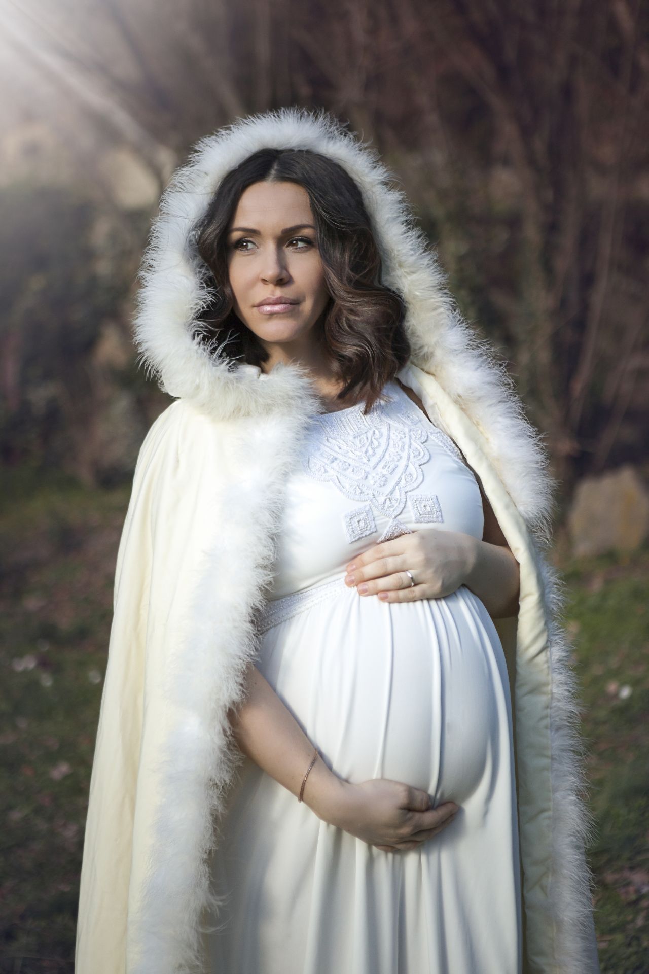 Questa mantella con cappuccio è un salvashooting durante l ‘inverno! Pesante velluto fuori morbido raso dentro arricchito da un passepartout di piumino . Vi terrà caldissimo permettendovi di indossare abiti scollati di qualsiasi sfumatura di colore. Da far volare via al primo raggio di sole!
